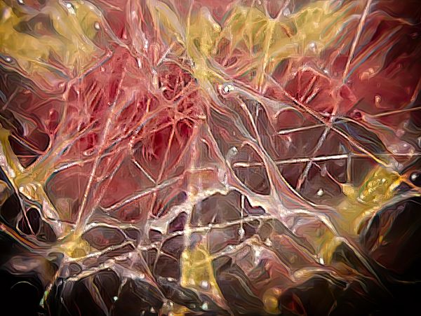 Photo imaging to the left and above are colorized still shots of fascia in the body, captured from a surgical operation video taken by the surgeon, Dr. Jean-Claude Guimberteau, MD.